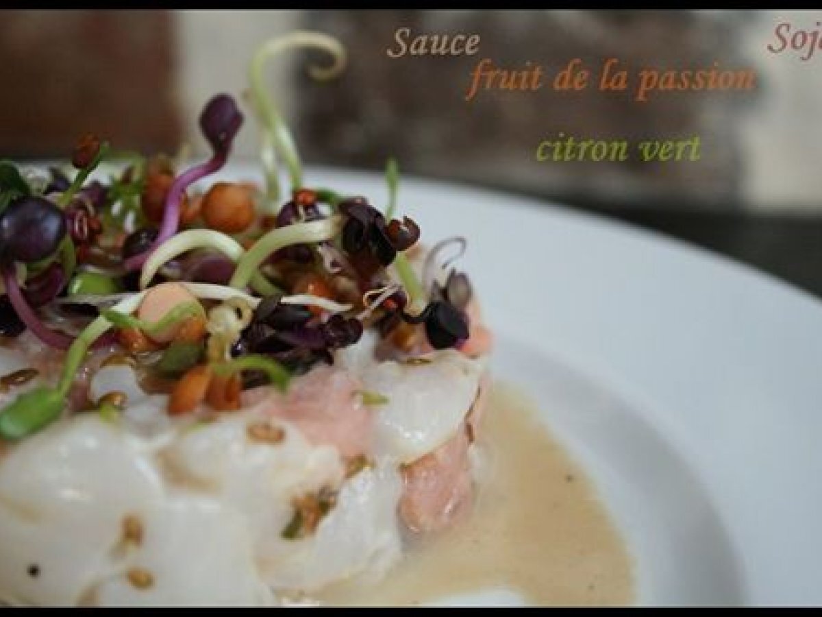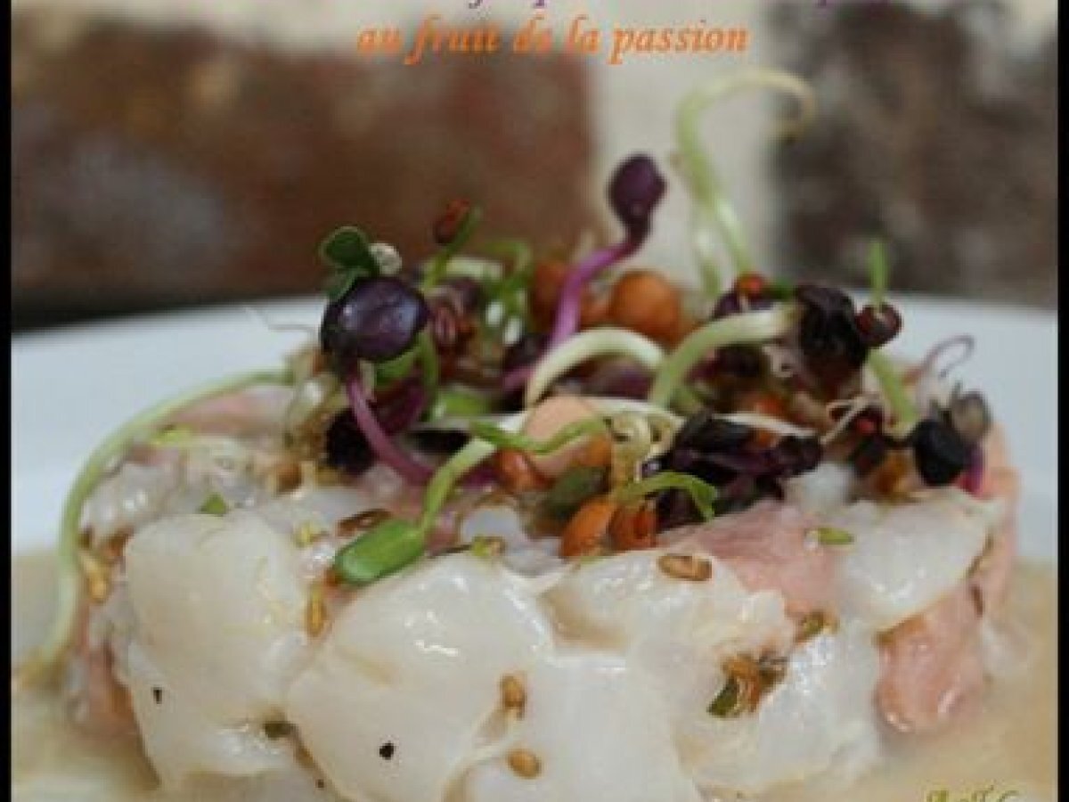 Tartare de noix de saint jacques et saumon réveillé par une note de fruit de la passion