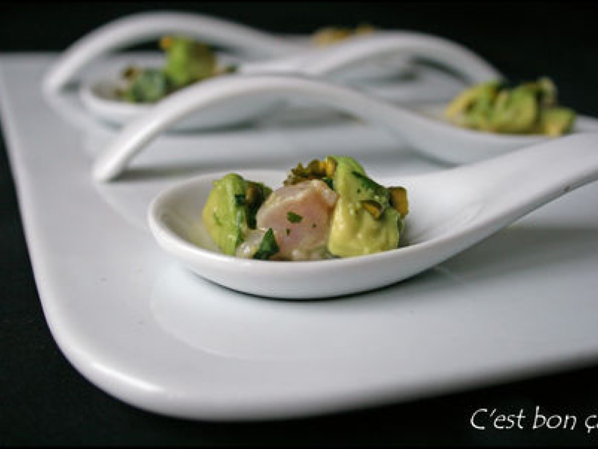 Tartare de thon au jus de yuzu, avocat et pistaches