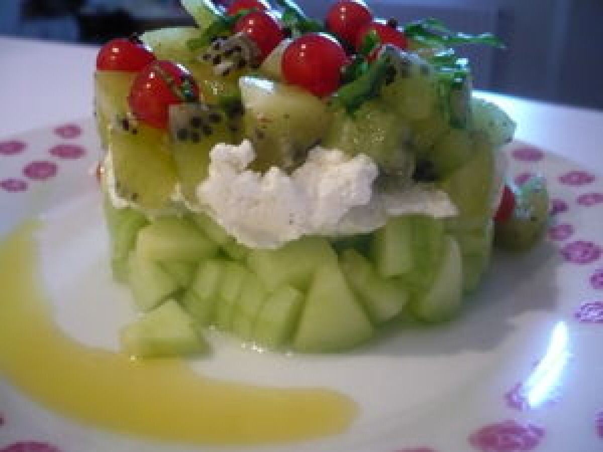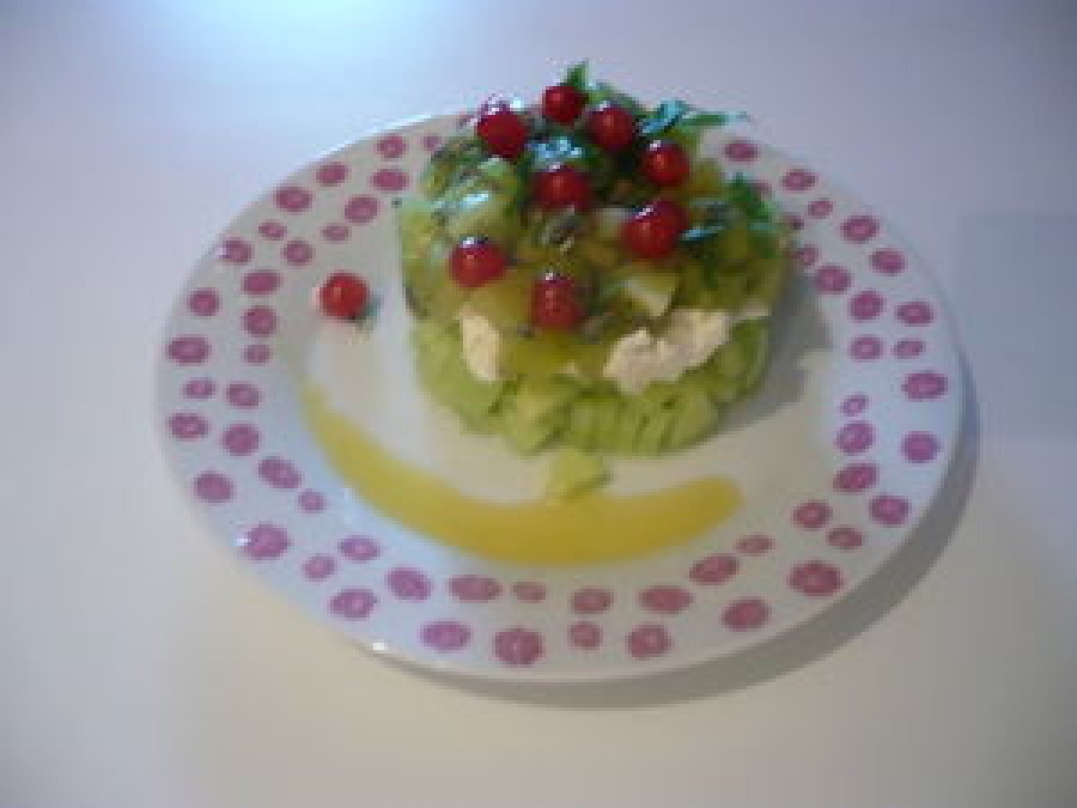 Une entrée festive un peu acidulée. L'association des saveurs est délicate, fraîche, parfaite pour ce superbe été.