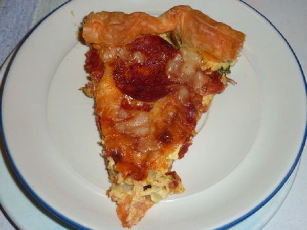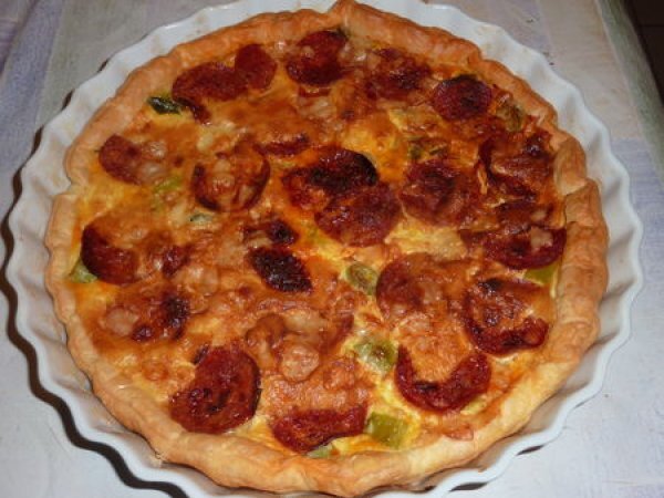Tarte au chorizo et poireaux PrécédentSuivant Entréefacile1 heure748 Kcal Envoyer cette recette à un ami Imprimer cette page Poser une question à l'auteur Publier votre photo de cette recette Ingrédients 4 1 pâte à tarte brisée ou feuilletée 200 g de chorizo piquant 2 poireaux 150 g de crème 2 oeufs 50 g de comté râpé