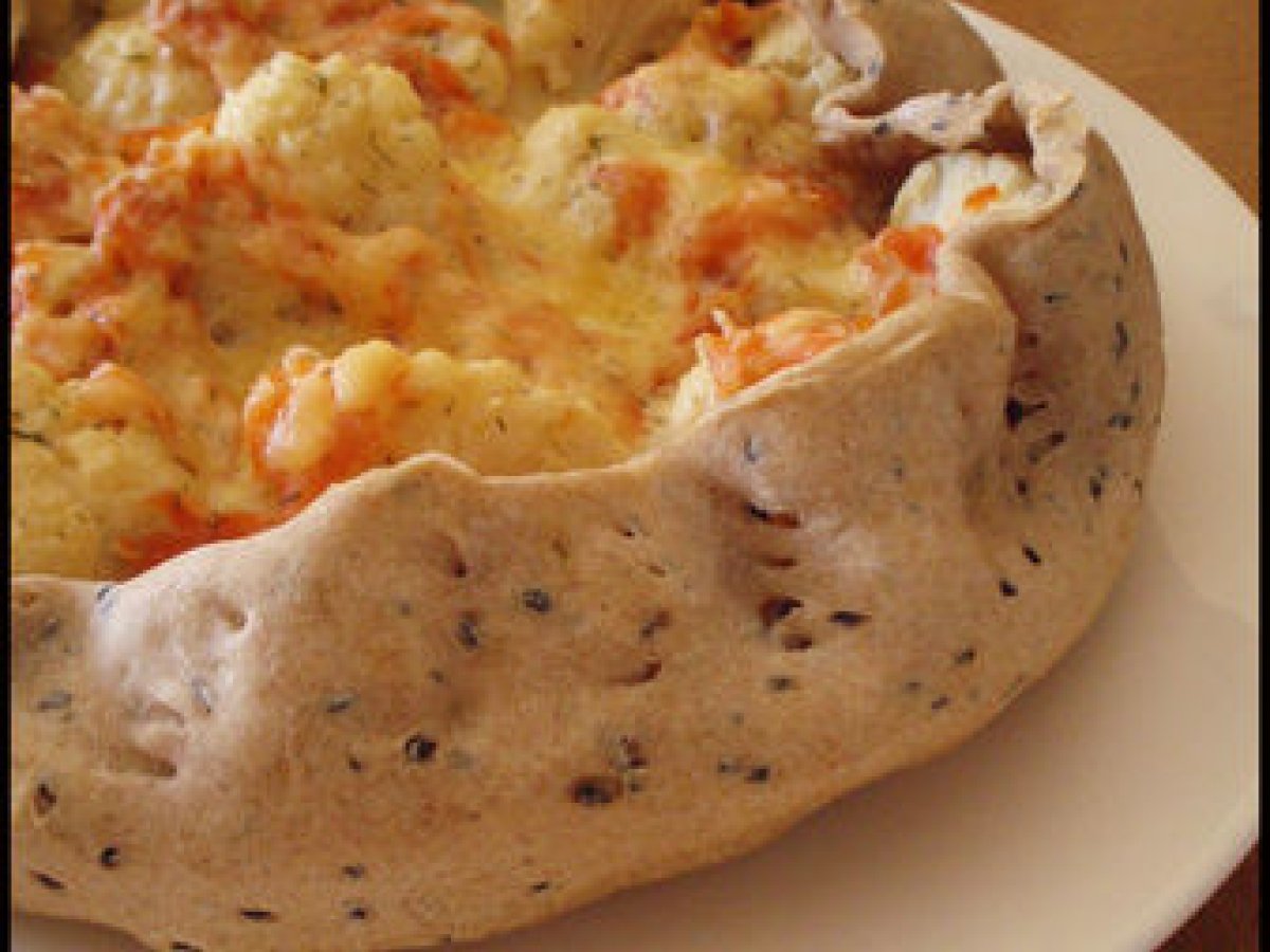 Tarte au chou-fleur, saumon fumé et gouda jeune