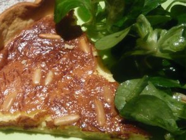 Tarte au comté, miel et pignons de pin, et sa salade au miel ! PrécédentSuivant Entréefacile50 min805 Kcal Envoyer cette recette à un ami Imprimer cette page Poser une question à l'auteur Publier votre photo de cette recette Ingrédients 4 une pâte brisée 3 oeufs 3 cuillères à soupe de crème fraîche 1 cuillère à soupe de miel liquide 200 g de comté râpé pignons de pin Pour la salade d'accompagnement : 300 g de mâche Une vinaigrette : 2 cuillères à soupe de vinaigre de Xérès 5 cuillères à soupe d'huile 1 cuillère à soupe de miel liquide du sel du poivre