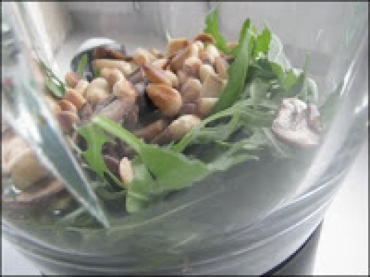 Tarte au pesto de roquette-champignons, tomates & parme votez maintenant PrécédentSuivant Entréefacile40 min563 Kcal Envoyer cette recette à un ami Imprimer cette page Poser une question à l'auteur Publier votre photo de cette recette Ingrédients 4 1 pâte brisée 1 poignée de roquette 1 cuillère à soupe de pignons 5 copeaux de parmesan 5 champignons bruns de Paris (de taille moyenne) de l'huile d'olive 20 petites tomates en grappe 50 g de fromage râpé 4 tranches de jambon de Parme sel et poivre Coût estimé: 10.65Euros€ (2.66€/part)