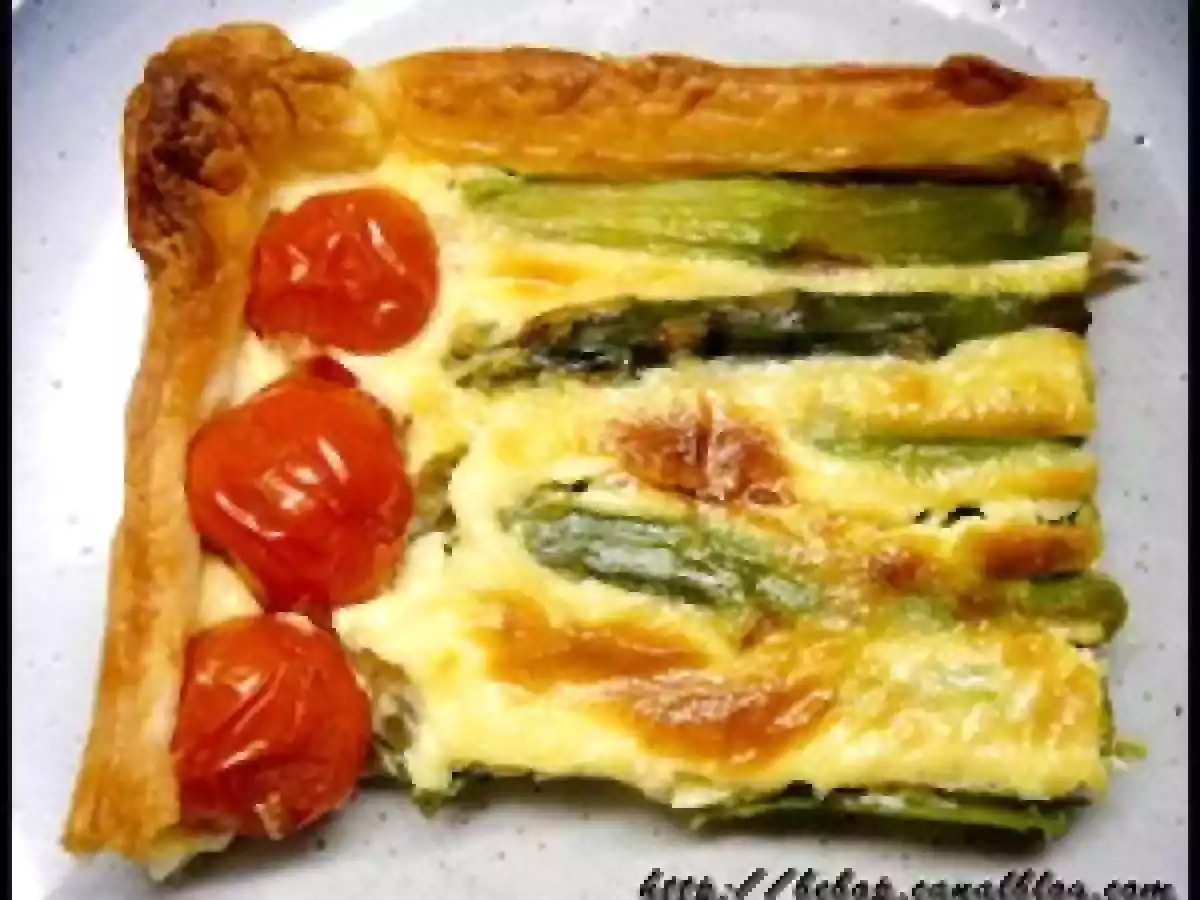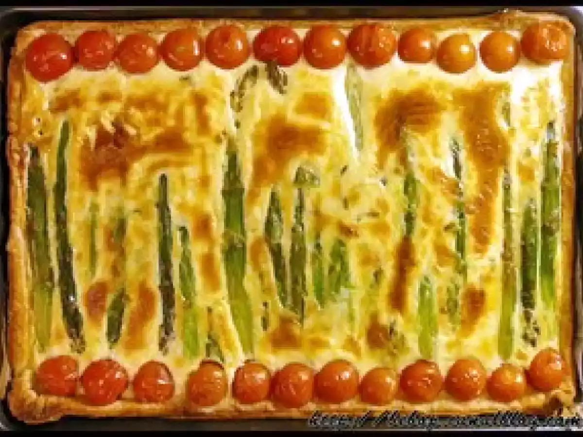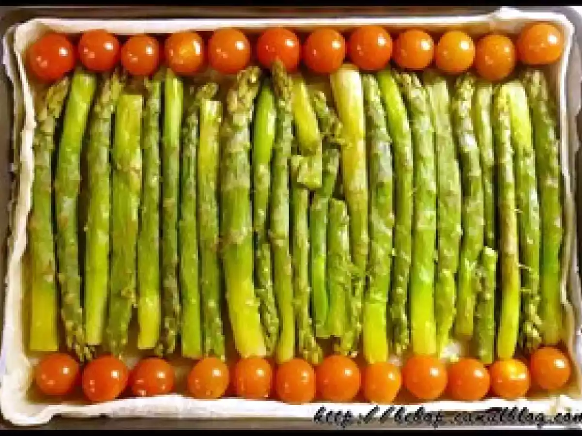 Une tarte croquante, originale et super facile à faire. Savoureux, extra et agréable. Une bonne idée pour utiliser les tomates cerise et les asperges oublié dans le frigo.