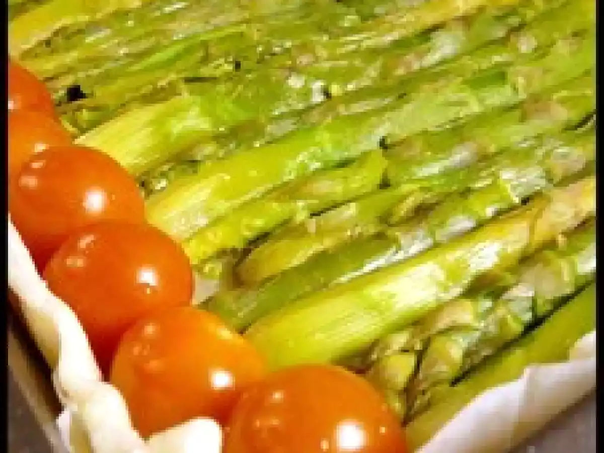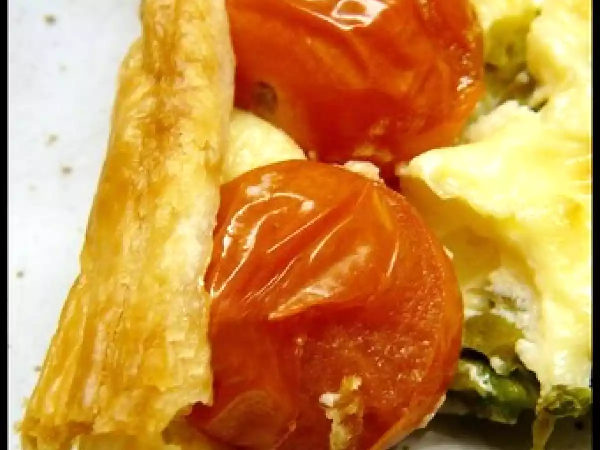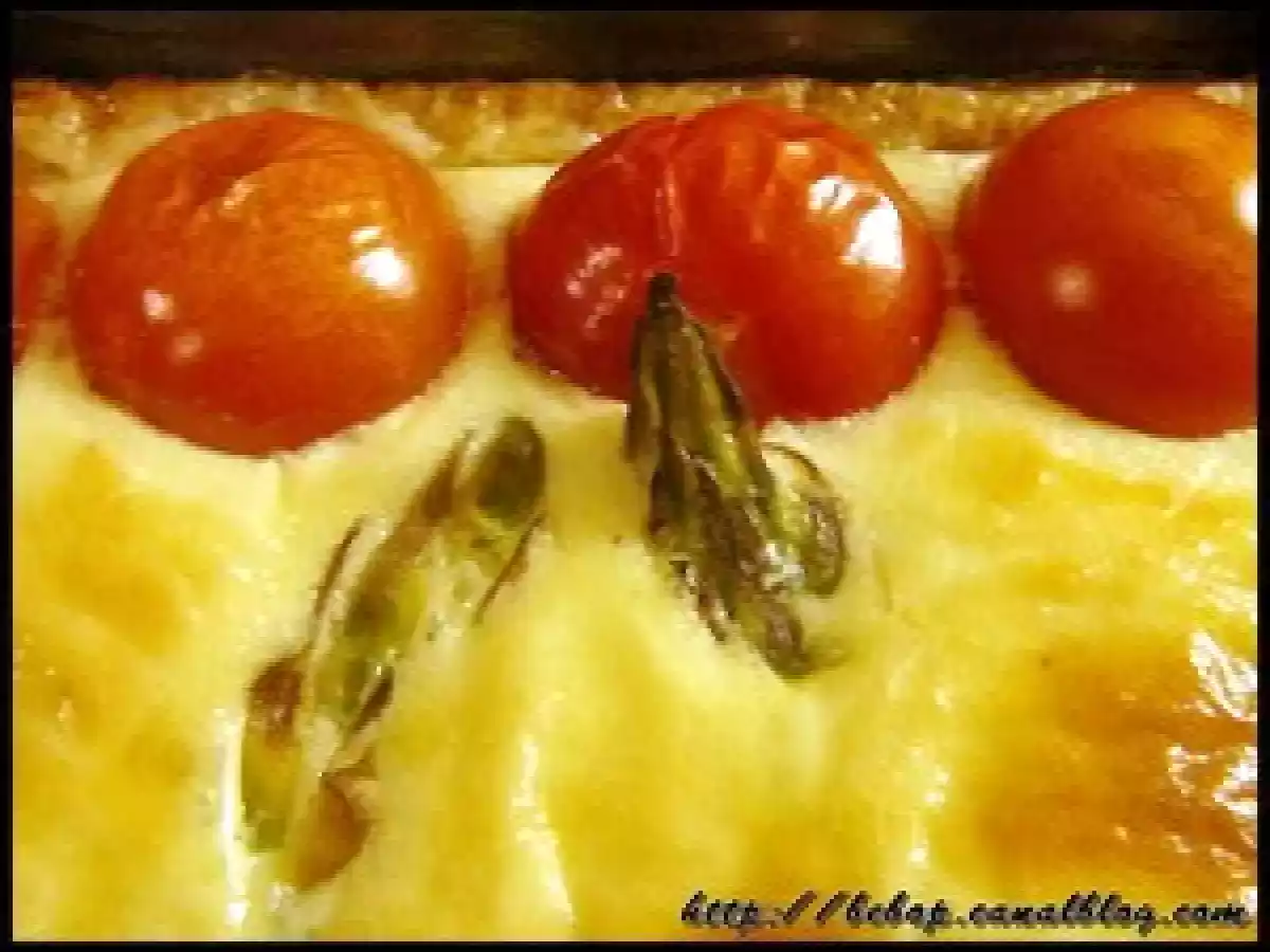 Une tarte croquante, originale et super facile à faire. Savoureux, extra et agréable. Une bonne idée pour utiliser les tomates cerise et les asperges oublié dans le frigo.
