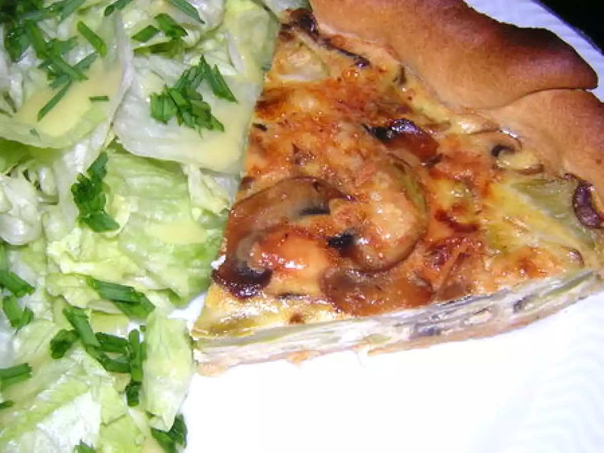 Tarte aux champignons a l'etorki votez maintenant Entréefacile1 h 15 m Envoyer cette recette à un ami Imprimer cette page Poser une question à l'auteur Publier votre photo de cette recette Ingrédients 4 1 rouleau de pâte brisée monoprix bio 400 g champignons de paris émincés ou 1 assortiment de champignons forestiers 1 courgette coupée en fines lamelles (copeaux) 150 g d'Etorki râpé finement 4 oeufs 2 gousses d'ail préssées poivre 1/2 cuillère à café de thym