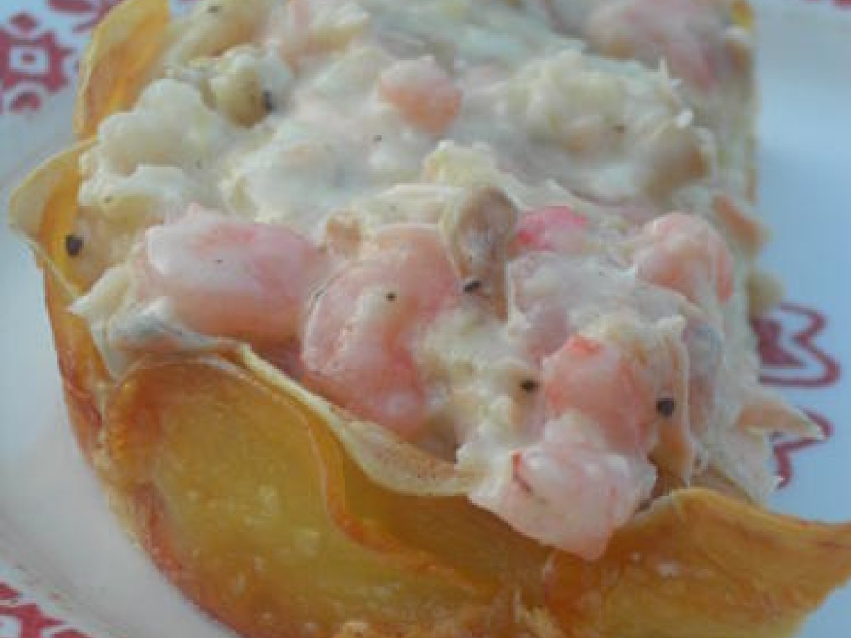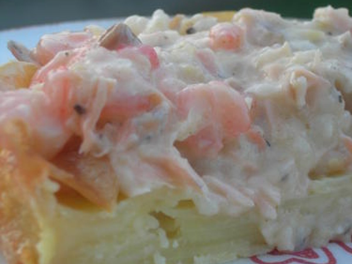 Tarte de pommes de terre aux fruits de mer, ou pâte de patates et patatales