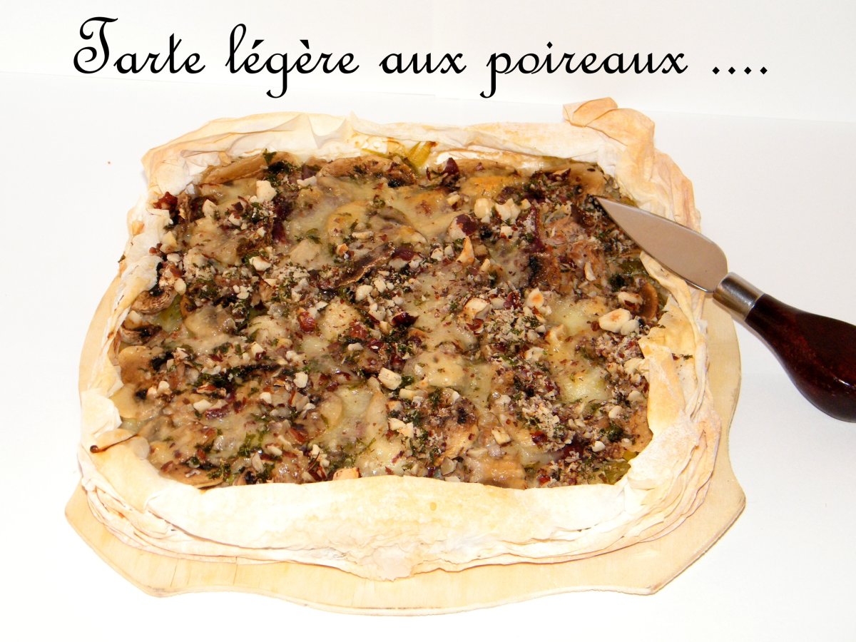 Tarte légère aux poireaux ... PrécédentSuivant Entréefacile40 min Envoyer cette recette à un ami Imprimer cette page Poser une question à l'auteur Publier votre photo de cette recette Ingrédients 4 300 g de poireaux / 10 g de beurre demi-sel / 1/2 verre de vin blanc / 130 g de thon au naturel égoutté / 4 champignons de paris frais / 1 poignée de noisettes / quelques branches de persil / 20 g de noisettes / 20 g de viande des grisons / 1/2 boule de mozzarella/ 10 cl de crème liquide allégée .