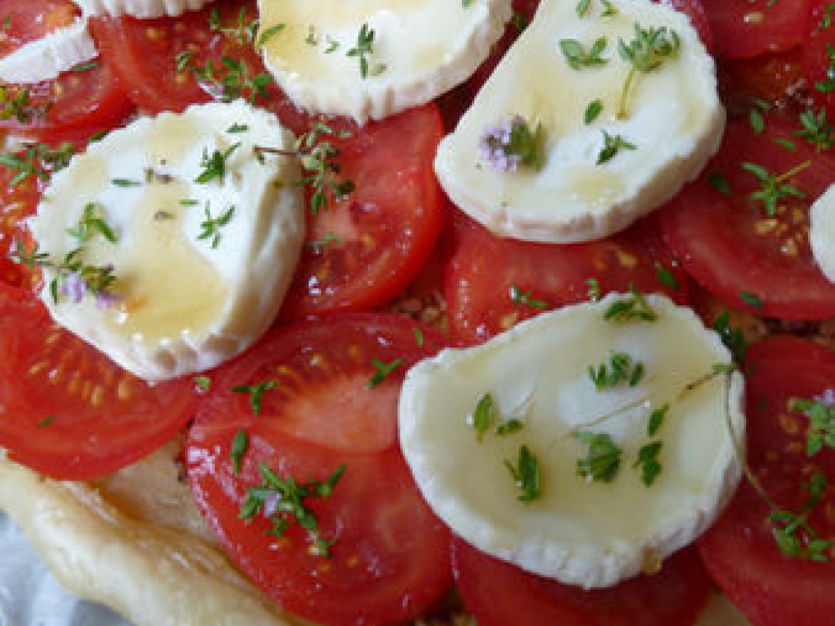 Tarte moutarde tomate, chèvre, miel et thym en fleurs votez maintenant Entréefacile10 min Envoyer cette recette à un ami Imprimer cette page Poser une question à l'auteur Publier votre photo de cette recette Ingrédients 4 une pâte feuilletée moutarde à l'ancienne belles rondelles de tomates savoureuses en rosace sel poivre rondelles de chèvre thym en fleurs un filet de miel huile d'olive