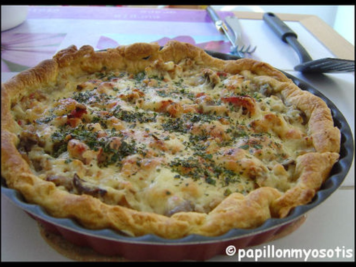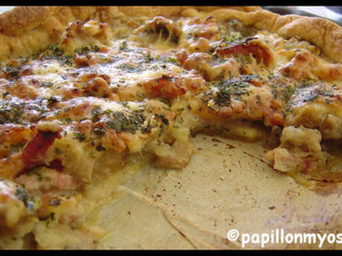Tarte oignons lardons & champignons PrécédentSuivant Entréemoyen50 min465 Kcal Envoyer cette recette à un ami Imprimer cette page Poser une question à l'auteur Publier votre photo de cette recette Ingrédients 4 1 pâte feuilletée 2 oignons 1 boîte de champignons de Paris en morceaux 1 paquet de lardons nature 1 Cuillère à Soupe de moutarde douce à la bière Gruyère râpé Huile d'olive Poivre Coût estimé: 4.64Euros€ (1.16€/part)
