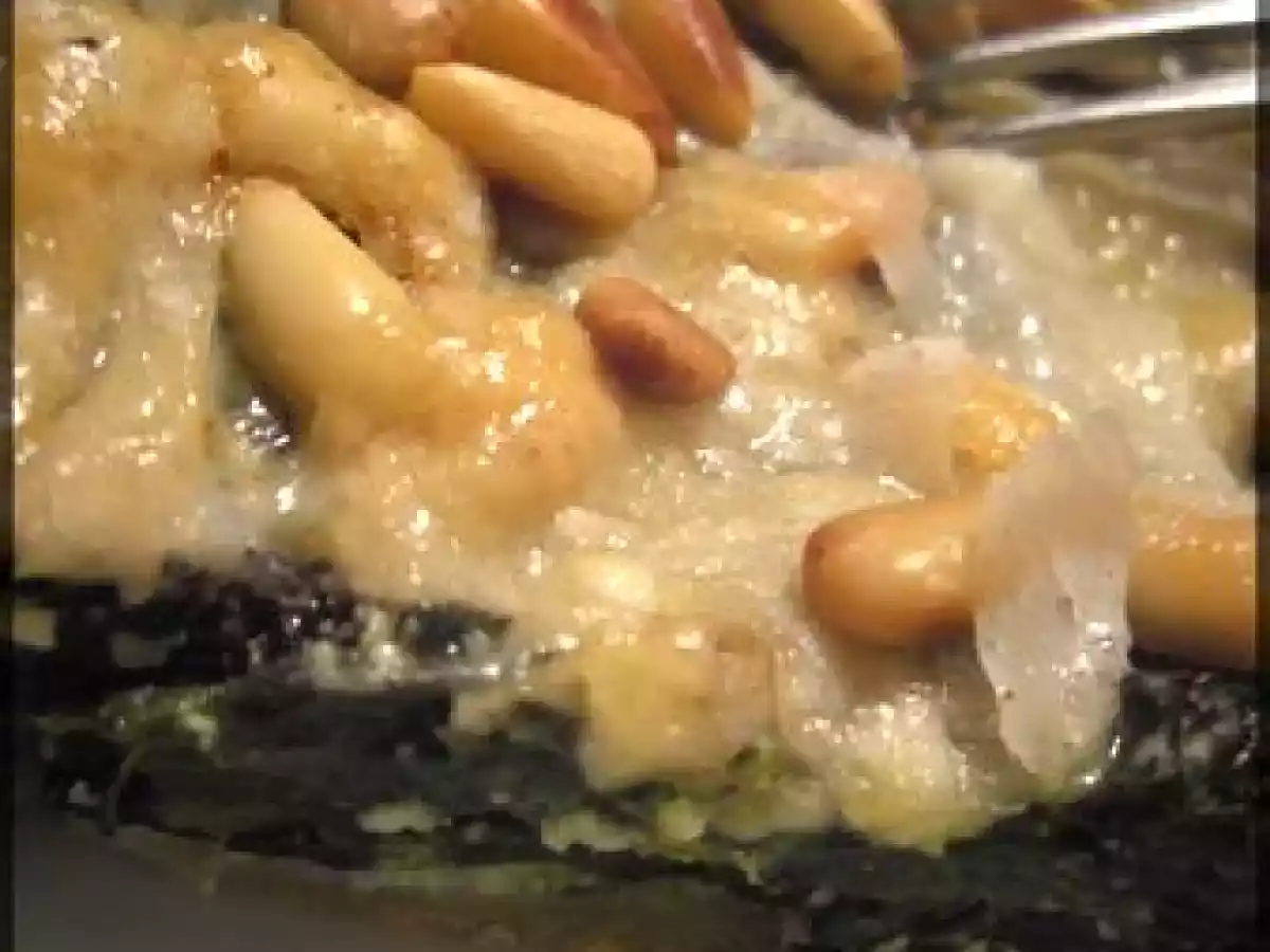Tarte ricotta/epinards au parmesan et pignons de pin (fond de frigo)