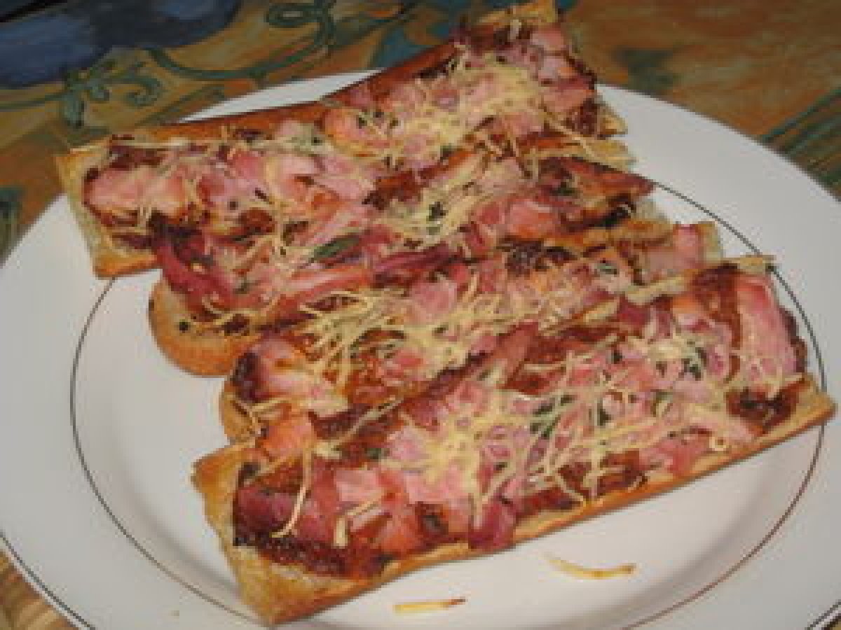 Tartine du dimanche soir votez maintenant Entréefacile20 min Envoyer cette recette à un ami Imprimer cette page Poser une question à l'auteur Publier votre photo de cette recette Ingrédients 5 1 baguette 1 pot de sauce pour pâtes poivron et aubergine 1 talon de jambon cuit Fromage râpé Basilic