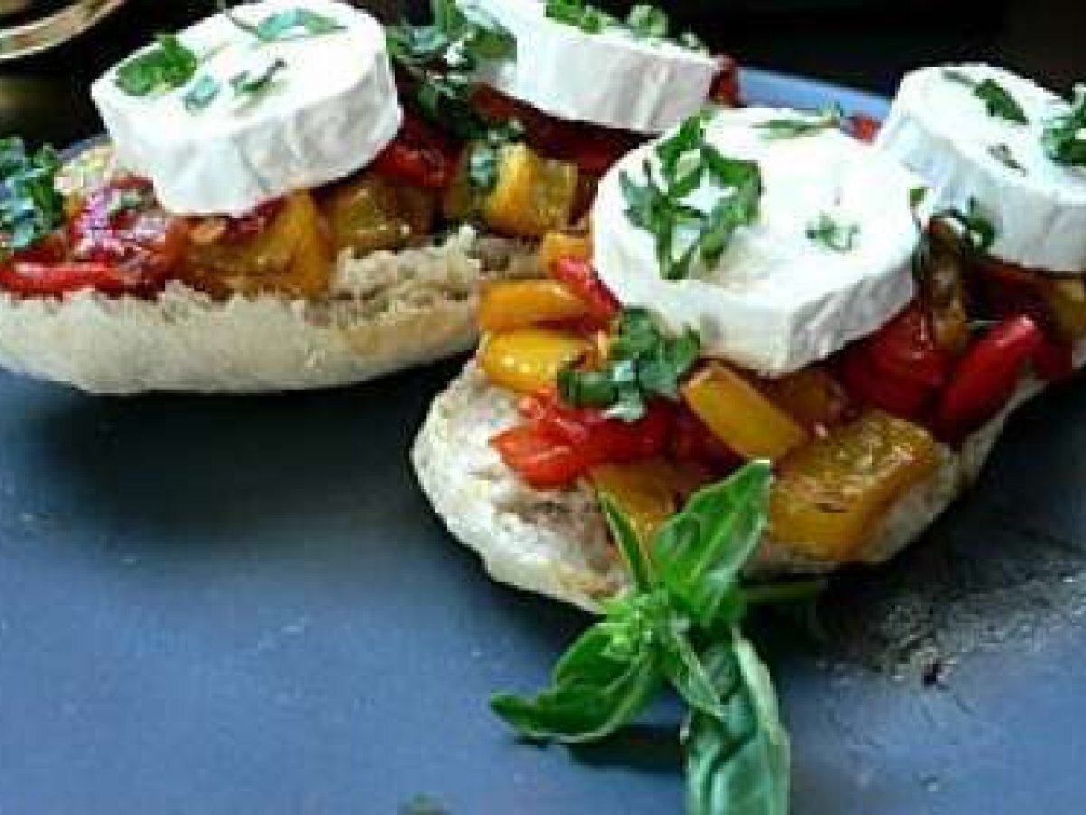 Tartine poivron - chèvre Entréefacile30 min Envoyer cette recette à un ami Imprimer cette page Poser une question à l'auteur Publier votre photo de cette recette Ingrédients 4 2 petits pains ciabatta maison 1 poivron rouge 1 poivron jaunes 1 bûche de chèvre 1 pincée de carvi (ou cumin) Basilic