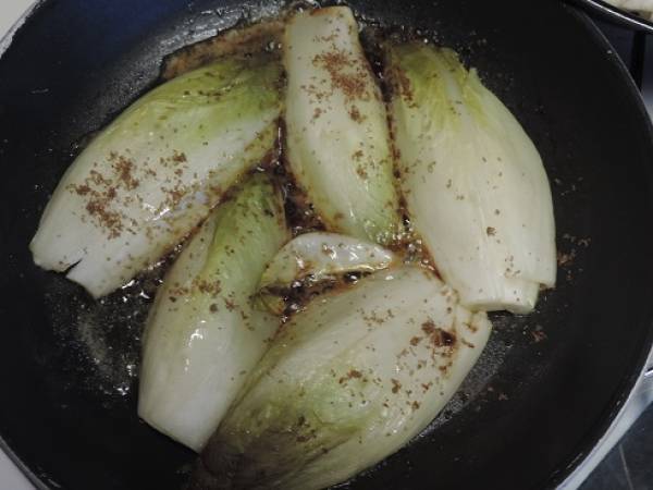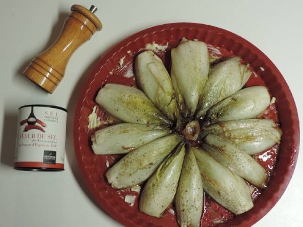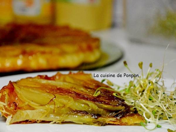 Tatin d'endives à la cassonade et moutarde douce, végétarien