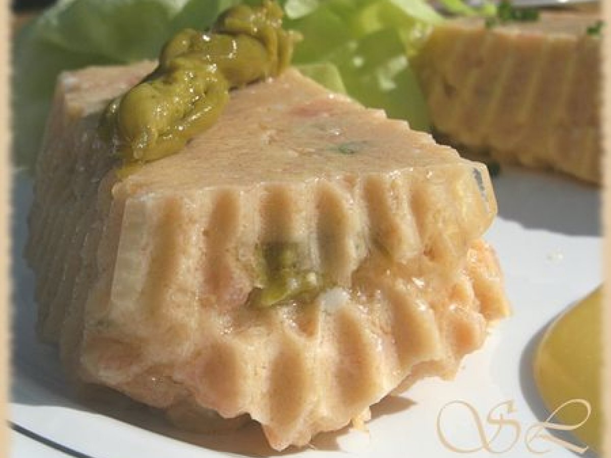 Terrine de saumon à l'asperge verte votez maintenant PrécédentSuivant Entréefacile25 min Envoyer cette recette à un ami Imprimer cette page Poser une question à l'auteur Publier votre photo de cette recette Ingrédients 6 Un bocal d'asperges vertes au naturel 1 oeuf durs 300 g de chair de saumon cuite au court-bouillon 4 tranches de truite fumée ½ bol de mayonnaise maison aux herbes Le jus d'un ½ citron 3 feuilles de gélatine alimentaire Sel poivre feuille de laurier herbes de Provence