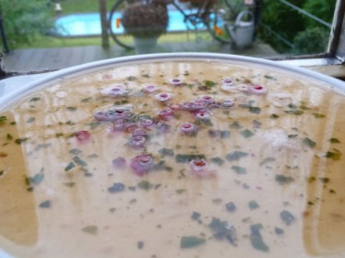 Terrine de saumon au concombre votez maintenant PrécédentSuivant Entréefacile25 min Envoyer cette recette à un ami Imprimer cette page Poser une question à l'auteur Publier votre photo de cette recette Ingrédients 4 300 g de saumon 3 feuilles de gélatine£20cl de crème fraîche 1/2 concombre 1 sachet de gelée dorée 2 branches d'estragon 1 cuillère à soupe de baies roses Sel et poivre