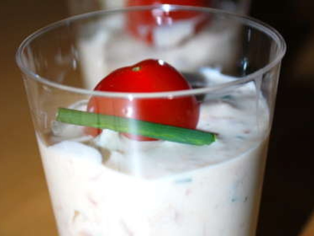 Remplir les verrines et rajouter pour la déco une tomate cerise et un brin de ciboulette.
