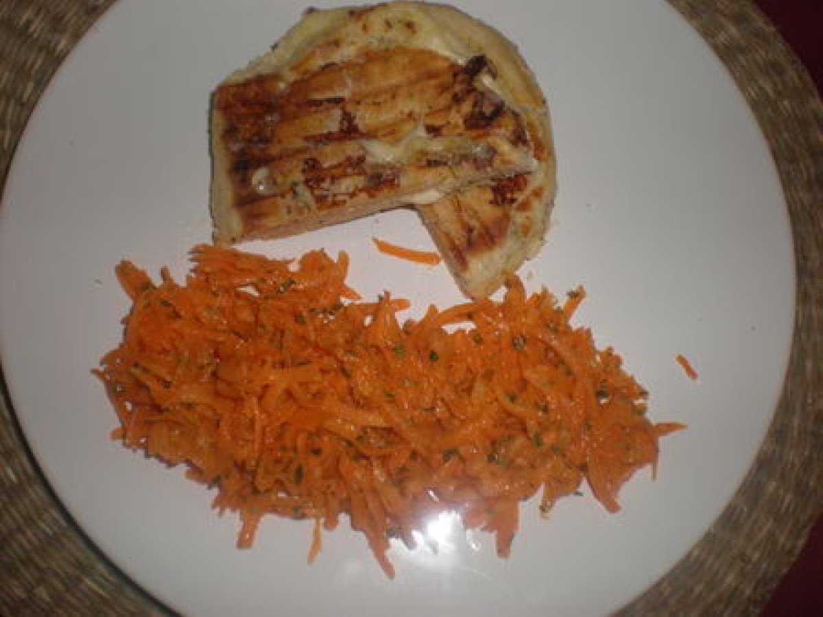 Une petite idée des sandwichs au fromage toastés avec une petite salade de carottes râpées. Un régal!