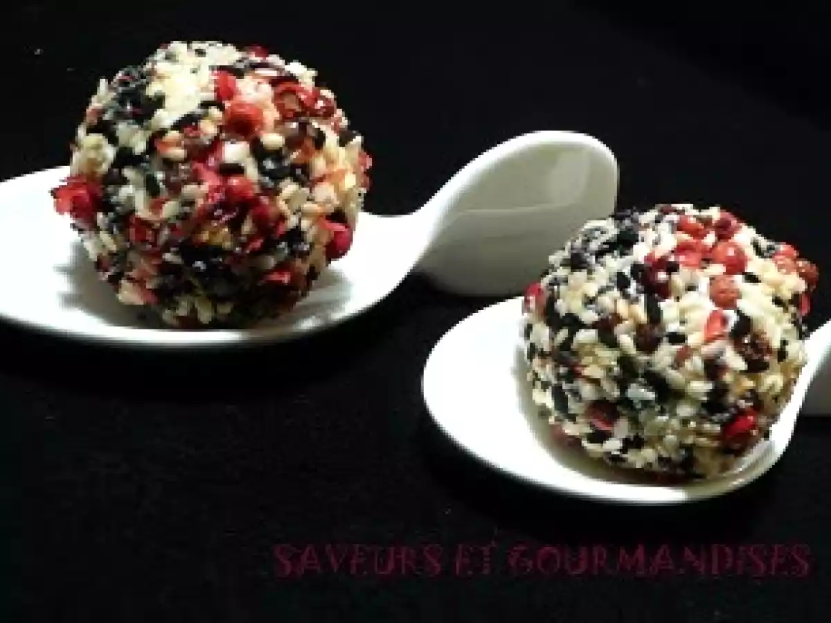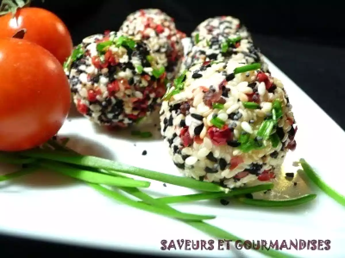 Tomates cerise panées au chèvre et aux graines. PrécédentSuivant Entréefacile15 min Envoyer cette recette à un ami Imprimer cette page Poser une question à l'auteur Publier votre photo de cette recette Ingrédients 6 18 tomates cerise (grappes de préférence) 300 g de chèvre frais 3 cuillères à soupe dherbes de Provence (je nen avais pas) 1 bouquet de ciboulette 1 cuillère à soupe de baies roses 1 cuillère à soupe de graines de pavot 2 cuillères à soupe de graines de sésame dorées 2 cuillères à soupe de graines de sésame noir (rajout personnel) 1 cuillère à soupe dhuile dolive Poivre.