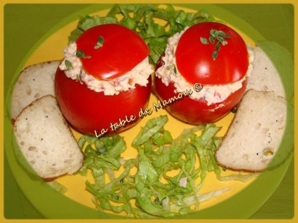 Tomates farcies au blanc de dinde PrécédentSuivant Entréefacile15 min271 Kcal Envoyer cette recette à un ami Imprimer cette page Poser une question à l'auteur Publier votre photo de cette recette Ingrédients 3 4 tranches de blanc de dinde, 6 tomates 6 branches de thym citron 2 cuillère à soupe de mayonnaise 1 cuillère à café de moutarde forte 12 olives vertes Paprika 3 tomates séchées à l'huile Coût estimé: 4.59Euros€ (1.53€/part)