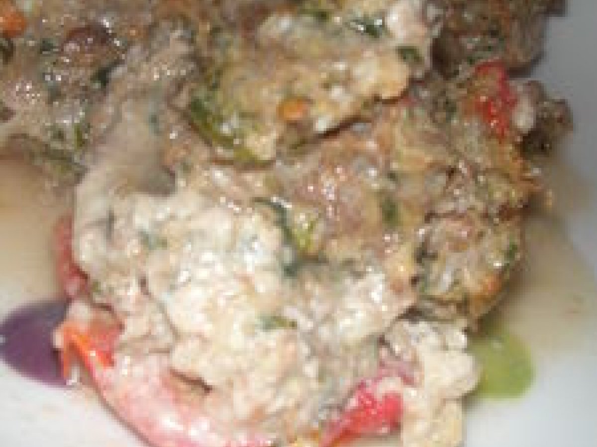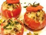 Tomates farcies mais pas a la chair a saussisse PrécédentSuivant Entréefacile50 min Envoyer cette recette à un ami Imprimer cette page Poser une question à l'auteur Publier votre photo de cette recette Ingrédients 4 4 grosses tomates à farcir 300 g de viande de boeuf cuite 2 échalotes + une pignée d'oignons frits tout prêt 1 petite poignée d'herbes de provence + 6 feuilles de basilic 1 oeuf 2 tranches de pain de mie au blé complet 10 cl de lait huile d'olive un reste de cottes de blette