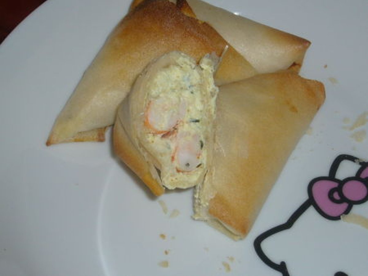 Triangles crevettes ricotta Entréefacile20 min463 Kcal Envoyer cette recette à un ami Imprimer cette page Poser une question à l'auteur Publier votre photo de cette recette Ingrédients 2 6 feuilles de brick 12 crevettes 1/2 pot de ricotta 2 cuillères à soupe de ciboulette ciselée 1/2 citron 1 cuillère à café de curry sel poivre Coût estimé: 7.53Euros€ (3.77€/part)