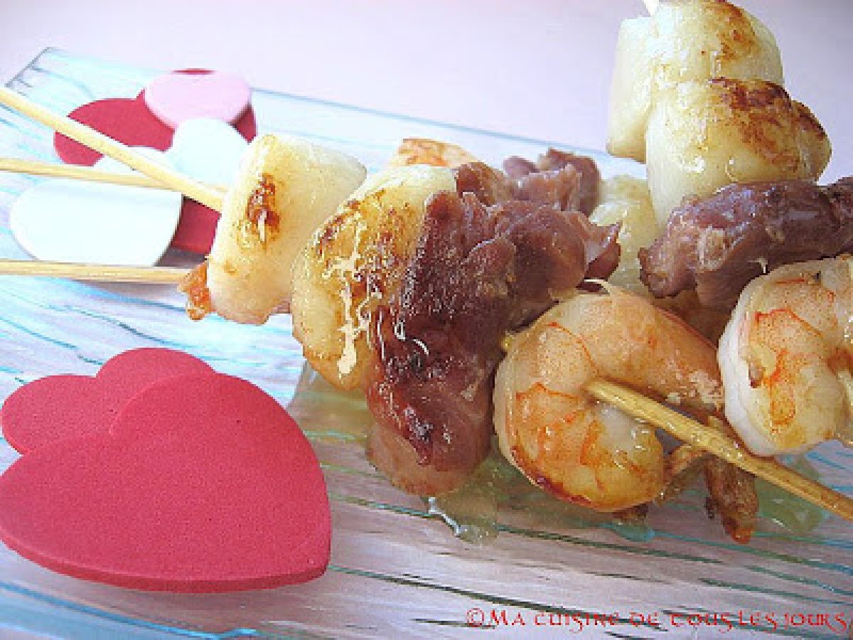 Un amour de st-valentin partie i: crevettes, pétoncles et prosciutto au caramel de citron Entréefacile25 min Envoyer cette recette à un ami Imprimer cette page Poser une question à l'auteur Publier votre photo de cette recette Ingrédients 2 6 gros pétoncles 6 grosses crevettes décortiquées, avec la queue 6 grandes tranches fines de prosciutto 1 cuillère à soupe(15 ml)de beurre 1 cuillère à soupe(15 ml)d'huile d'olive 1 cuillère à soupe(15 ml)de miel 1 cuillère à thé de sirop d'érable Le jus de 1 citron