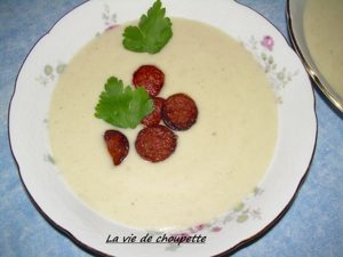 Veloute d'artichaut et chorizo votez maintenant Entréefacile50 min586 Kcal Envoyer cette recette à un ami Imprimer cette page Poser une question à l'auteur Publier votre photo de cette recette Ingrédients 4 12 coeurs fonds d'artichauts surgelés 1 gousse d'ail 1 oignon 1 pomme de terre 15cl de crème liquide 60cl de bouillon de volaille 12 tranches de chorizo 2 cuillères à soupe d' huile d'olive 4 brins de cerfeuil sel et poivre