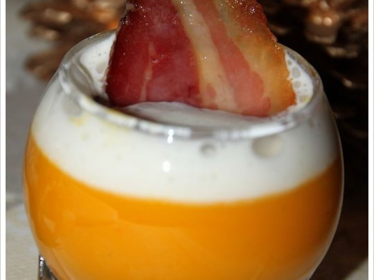 Velouté de potimarron , brunoise de châtaignes , espuma de reblochon au lard croustillant Entréefacile40 min Envoyer cette recette à un ami Imprimer cette page Poser une question à l'auteur Publier votre photo de cette recette Ingrédients 6 1 beau potimarron poivre muscade 1 bouillon de volaille 10 cl de crème fraîche liquide muscade 10+15 cl de crème fraîche liquide 1/2 bon grivois 100 g de marrons 10 g de beurre 1 cuillère à café de sucre 5 tranches fines de lard fumé