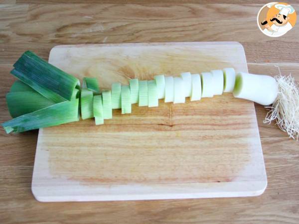 Dans une petite marmitte, faire cuire l'huile de tournesol et les morceaux de poireau.