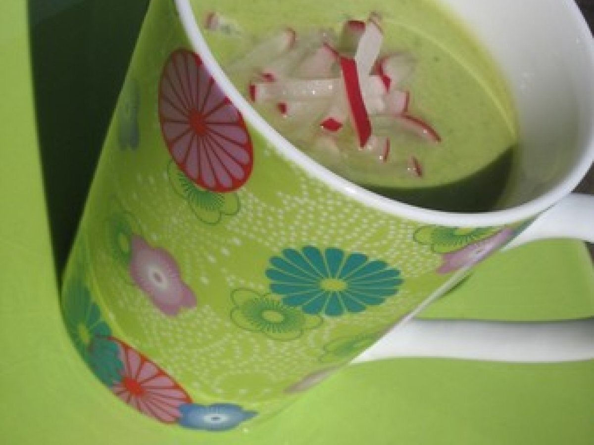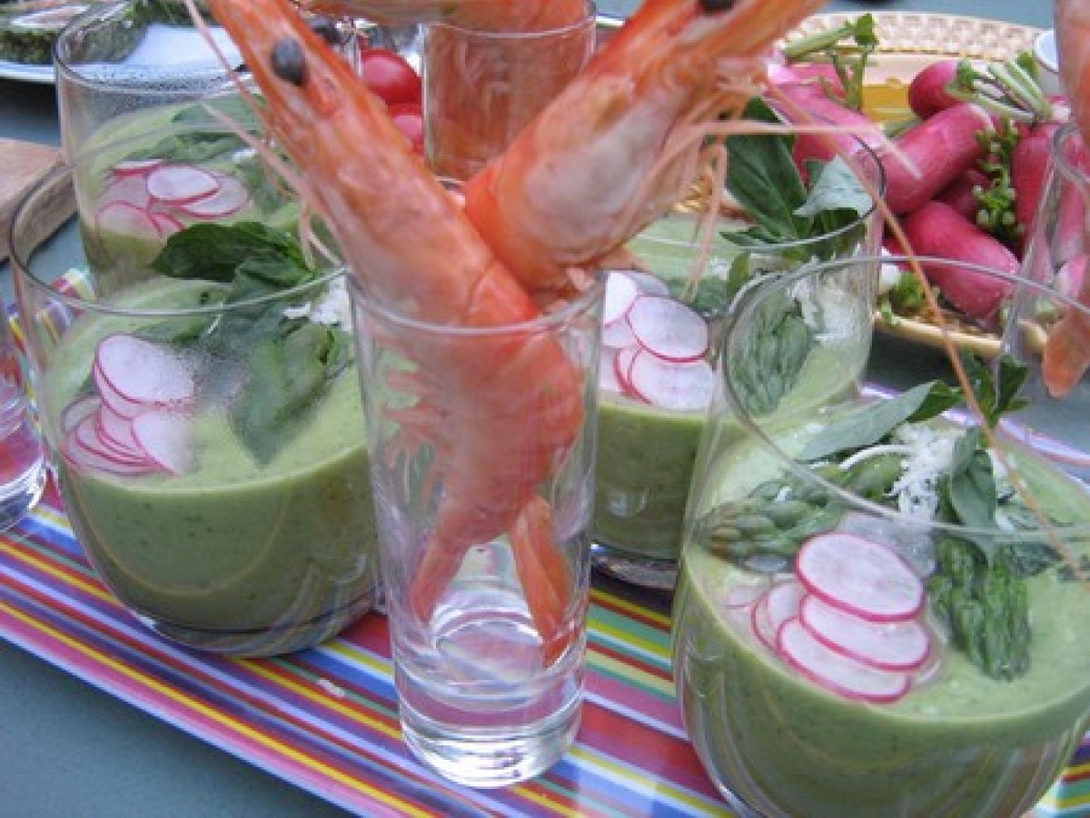 Velouté froid d'asperges vertes et fanes de radis