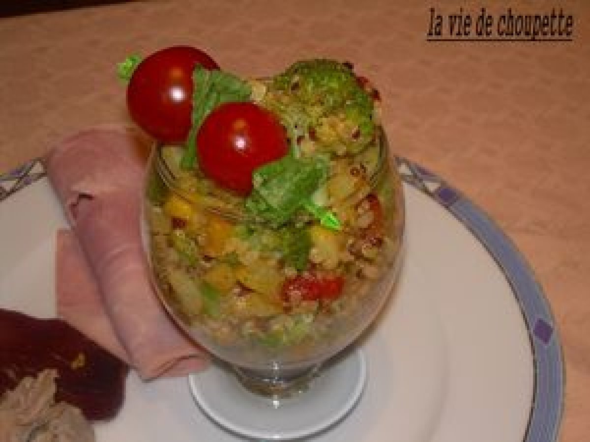 Verrine aux 5 légumes et au quinoa Entréefacile45 min Envoyer cette recette à un ami Imprimer cette page Poser une question à l'auteur Publier votre photo de cette recette Ingrédients 2 2 courgettes 1/2 poivron jaune 1/2 poivron rouge quelques tomates cerises brocoli frais quinoa sel, poivre, huile d'olive