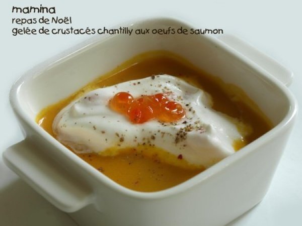 Verrine de gelée de crustacés aux oeufs de saumon pour les fêtes
