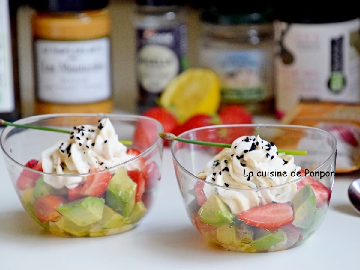 Verrine fraîcheur printanière: avocat, tomate et fraise, végétarien