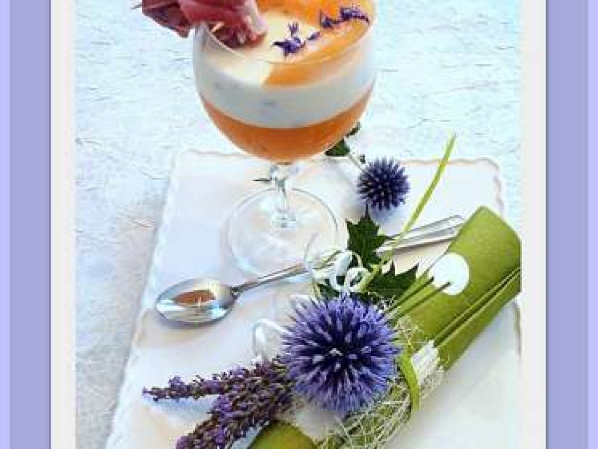 verrine pannacotta melon chèvre à la lavande PrécédentSuivant Entréemoyen25 min Envoyer cette recette à un ami Imprimer cette page Poser une question à l'auteur Publier votre photo de cette recette Ingrédients 4 40 cl de crème liquide light 250 de chèvre frais allégé (si possible) 2 g d'agar-agar sel et poivre une bonne pincée de lavande Pour la couche au melon 1 melon 2 gr d'agar agar