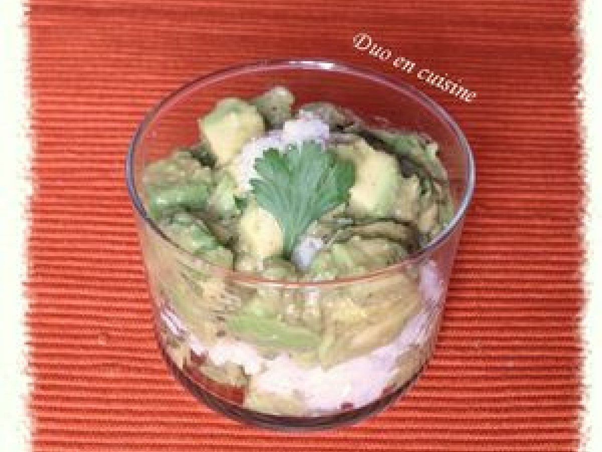 Verrines d'avocat et crabe aux saveurs asiatiques Entréemoyen15 min143 Kcal Envoyer cette recette à un ami Imprimer cette page Poser une question à l'auteur Publier votre photo de cette recette Ingrédients 2 1 bel avocat 60 g de miettes de chair de crabe 1 vingtaine de feuilles de coriandre Le jus d'un demi-citron vert 1 cuillère à soupe de sauce soja Une demi-cuillère à café de moutarde 1 pincée de cumin 1 pincée de gingembre moulu Sel, poivre