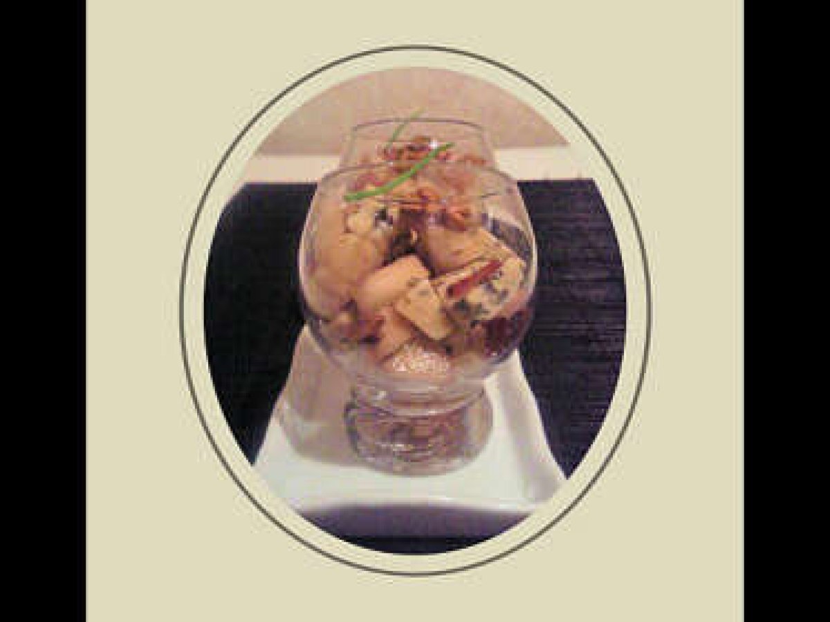 Verrines gourmandes aux poires et fourme d'ambert Entréemoyen15 min512 Kcal Envoyer cette recette à un ami Imprimer cette page Poser une question à l'auteur Publier votre photo de cette recette Ingrédients 4 4 poires 240 g de fourme d'Ambert 4 tranches de jambon serrano ou de parme Le jus d'un citron 16 noix Poivre 5 baies Huile de noix Vinaigre de vin