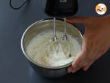 Fouetter le tout jusqu'à obtenir une crème onctueuse et homogène. Transférer dans une poche à douille munie d'une douille cannelée.