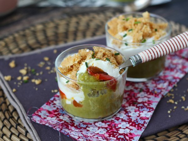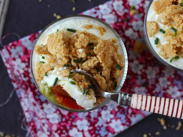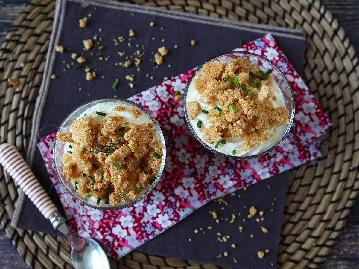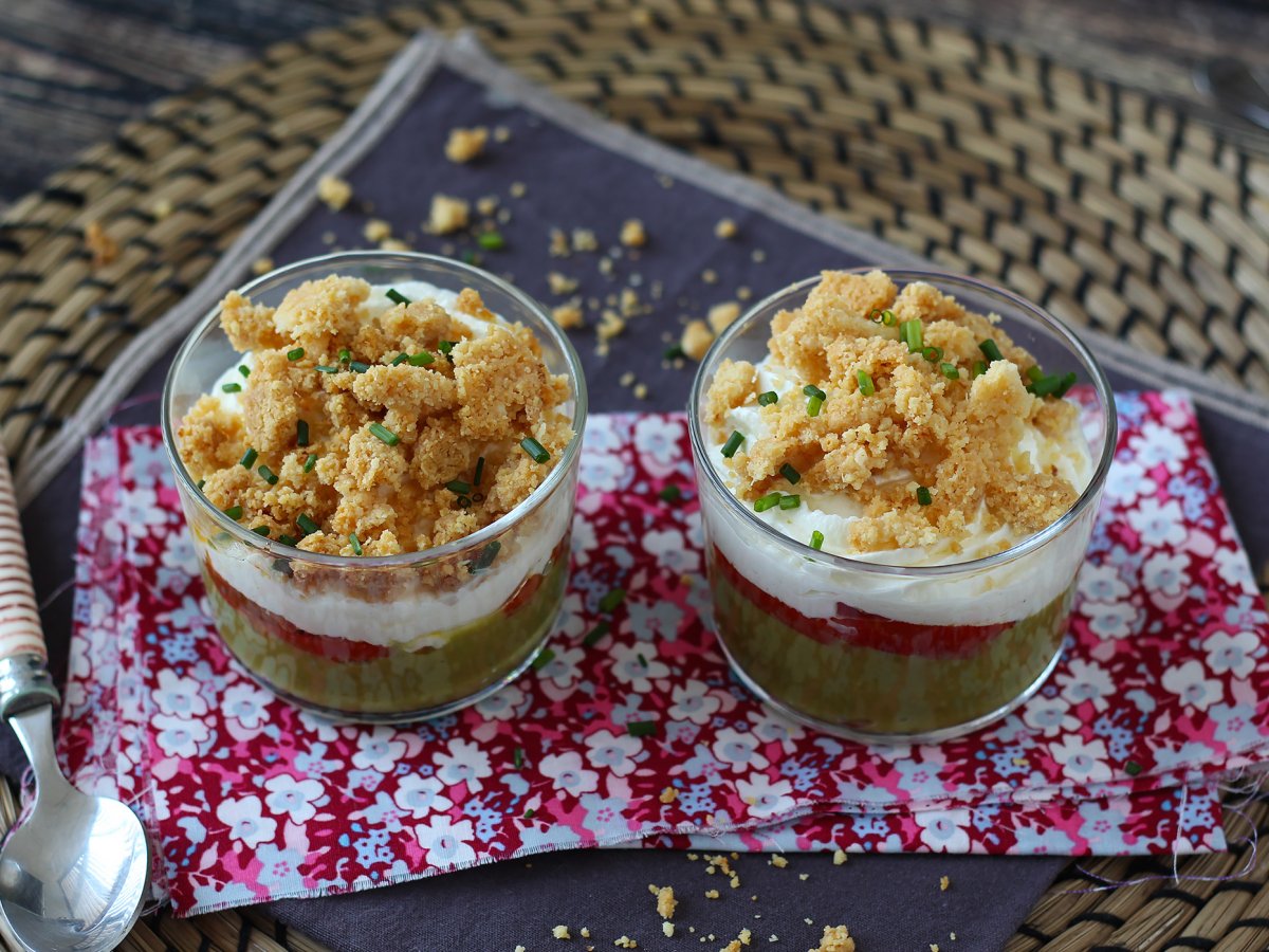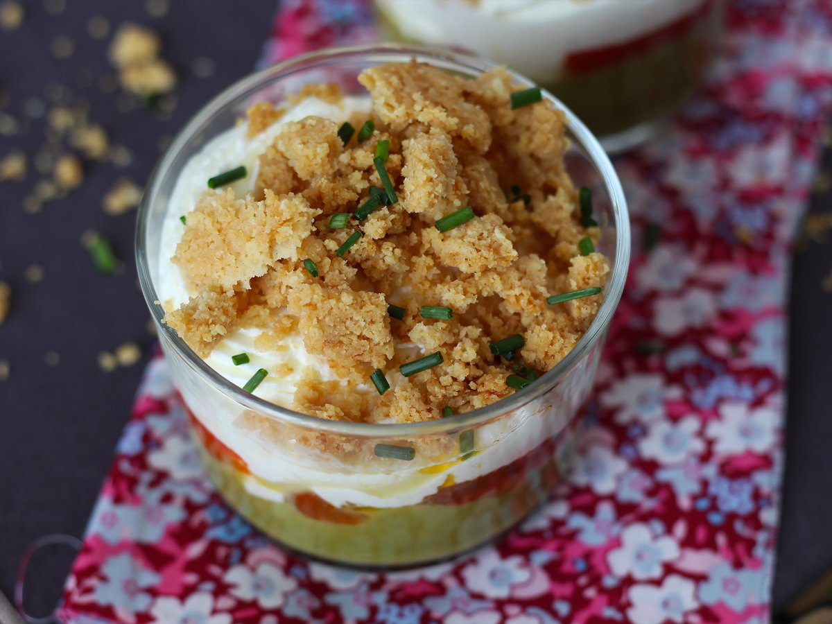 Nous avons décoré les verrines avec de la ciboulette mais n'hésitez pas à mettre du persil ou du basilic par exemple.