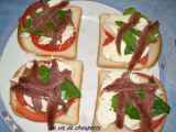 Ingrédients: 120 g de thon au naturel 8 tranches de pain de mie 100 g de fromage frais 1 grosse tomate 1 cuillère à soupe de tapenade fromage de portion beurre