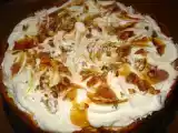 Ingrédients: Base à la poudre de biscuits roses : 150 g de poudre de biscuits roses 50 g de poudre d'amandes 100 g de beurre fondu un peu de lait Compotée de...