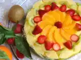 Ingrédients: Génoise : 4 oeufs 125 g de sucre (dont un sachet de sucre vanillé) 125 g de farine 1/2 sachet de levure chimique Crème à la pêche : 3 feuilles de...