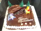 Ingrédients: 1 gâteau rond (ici: un gâteau maison à la noix de coco) 200 g de chocolat noir 75 g de chocolat au lait 200 g de sucre glace -1 blanc d’oeuf...