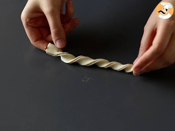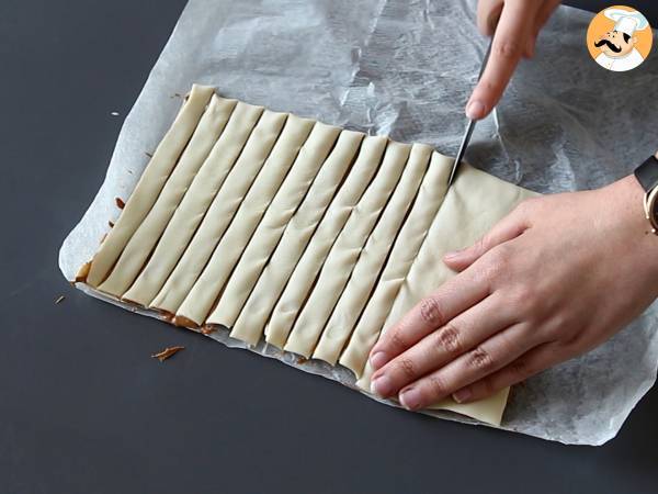 Couper de bandelettes d'environ 1 cm de large dans la pâte.