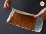 Etaler de la pâte à tartiner au speculoos sur la moitié de la surface de la pâte feuilletée rectangulaire. Replier la pâte en deux.