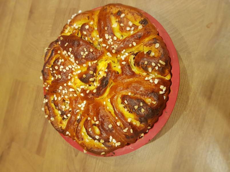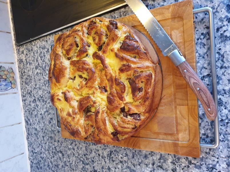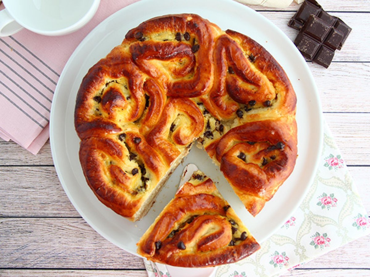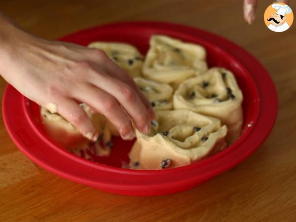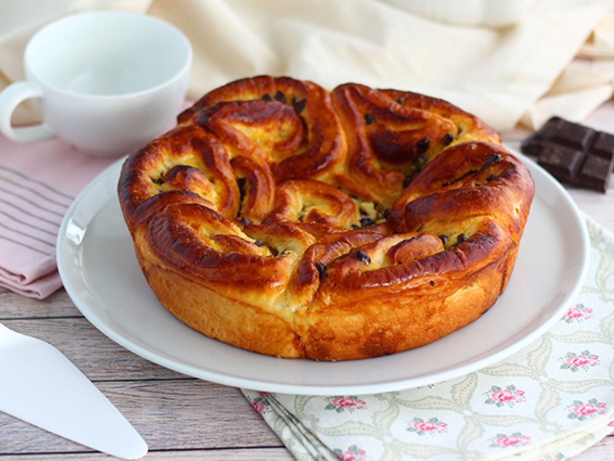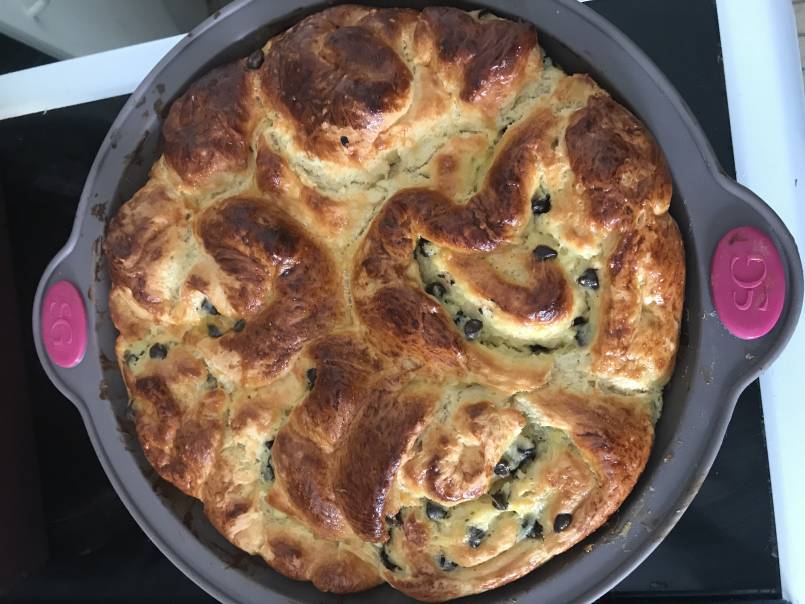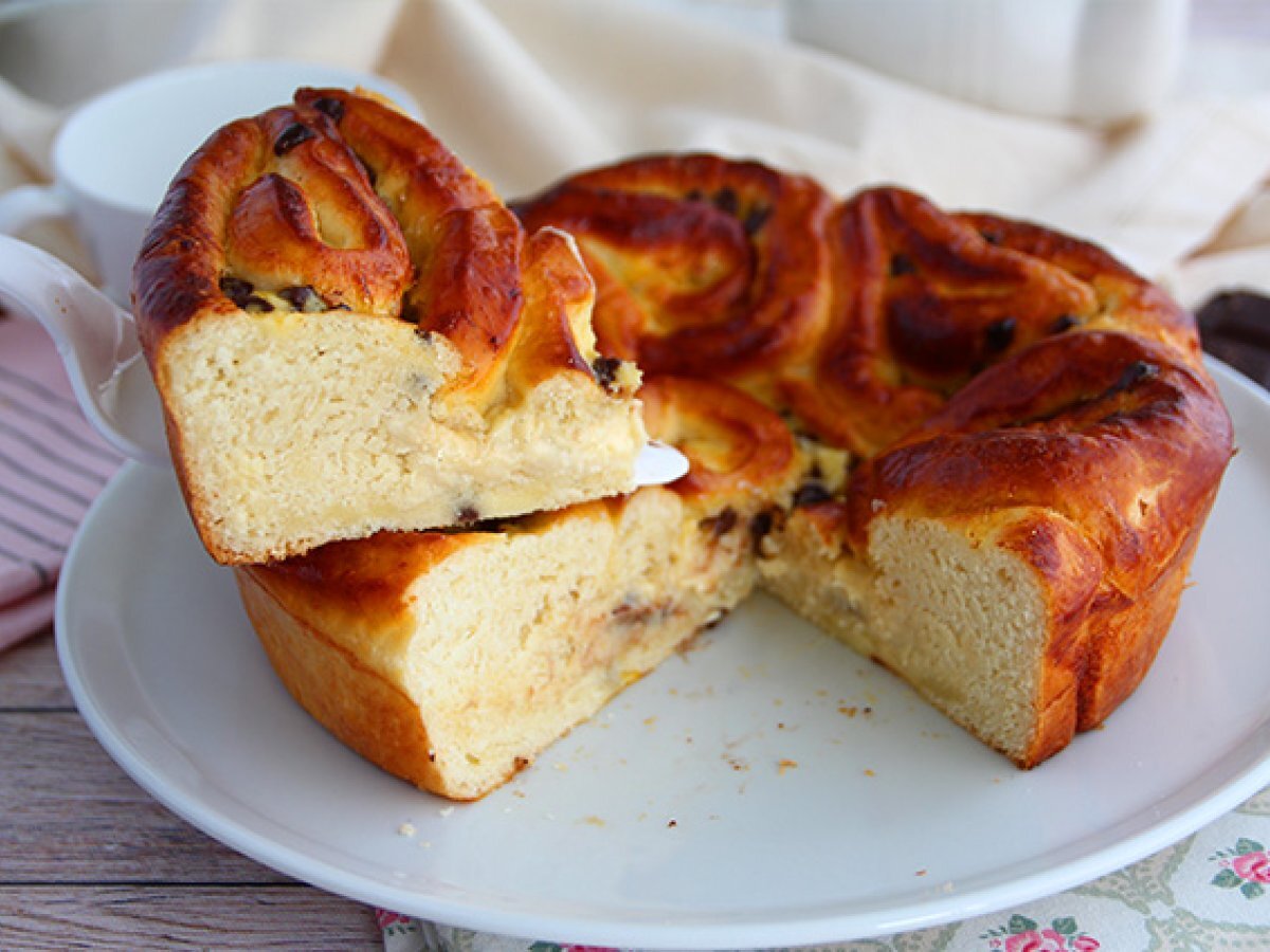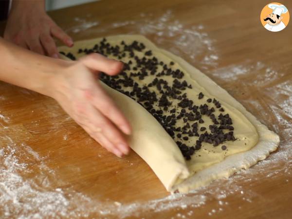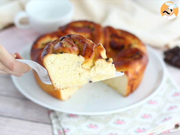 Brioche chinois, fourrée à la crème pâtissière et aux pépites de chocolat