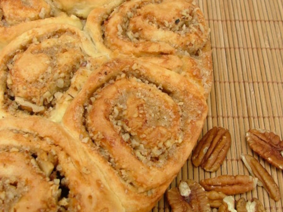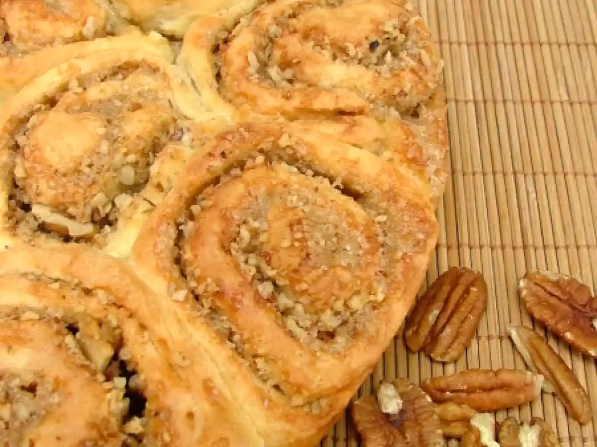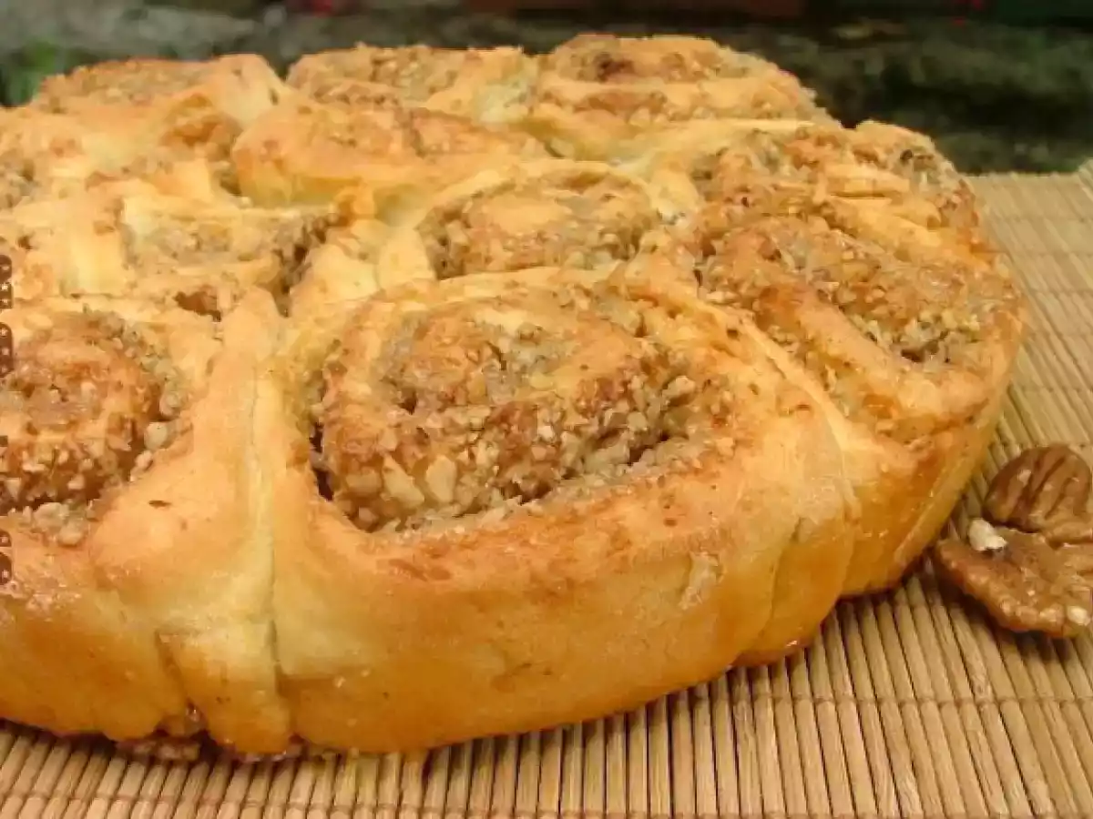 Brioche roulée aux noix & à la cannelle PrécédentSuivant Goûterfacile30 min Envoyer cette recette à un ami Imprimer cette page Poser une question à l'auteur Publier votre photo de cette recette Ingrédients 6 250 g de farine 1/2 cube de levure de boulanger 12 cl de lait 100 g de noix de pécan 30 g de sucre en poudre 1 oeuf battu 60 g de beurre mou en dés 50 g de beurre fondu 100 g de cassonade 1 cuillère à soupe de cannelle en poudre 1/2 cuillère à soupe de muscade en poudre 1/2 cuillère à café de sel Coût estimé: 5.37Euros€ (0.9€/part)
