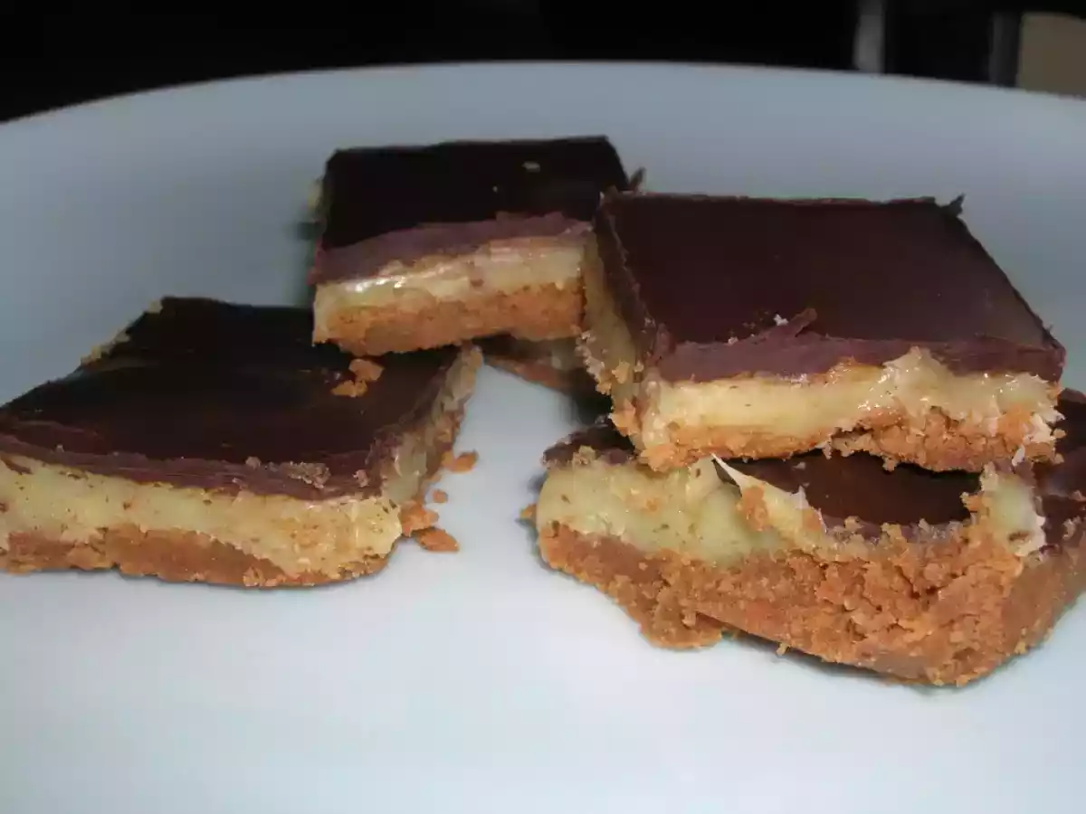 Carrés fondants au chocolat et au caramel beurre salé votez maintenant Goûtermoyen55 min Envoyer cette recette à un ami Imprimer cette page Poser une question à l'auteur Publier votre photo de cette recette Ingrédients 8 Ingrédients pour le biscuit: 200 g de biscuits au chocolat 3 cuillères à soupe de noix de coco râpée 125 g de beurre salé Ingrédients pour le caramel beurre salé 1 boîte de lait concentré sucré 50 g de beurre salé Pour la dernière couche 125 g de chocolat noir 2 cuillères à café d'huile végétale