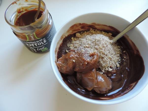 Chocolat à tartiner avec de la confiture de lait cacao et noisettes