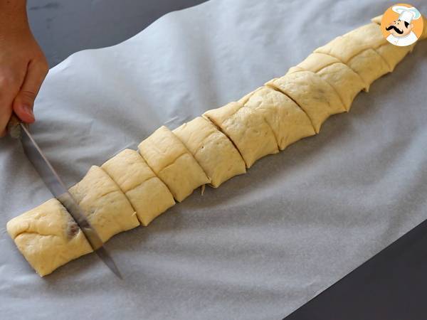 Couper les deux extrémités du boudins puis couper la pâte en 12 morceaux.